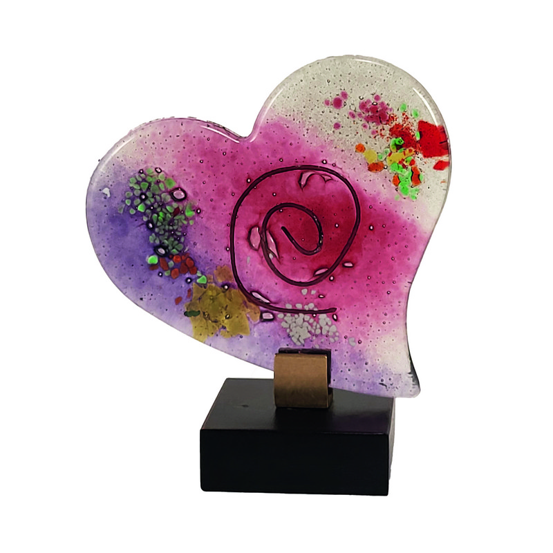 Glasherz auf Holzsockel, violett/mauve,12 cm hoch890191