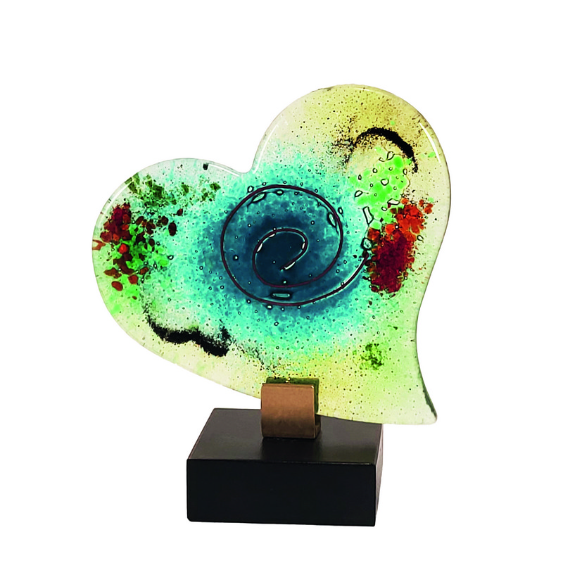 Glasherz auf Holzsockel, hellgrün/aqua,12 cm hoch890191