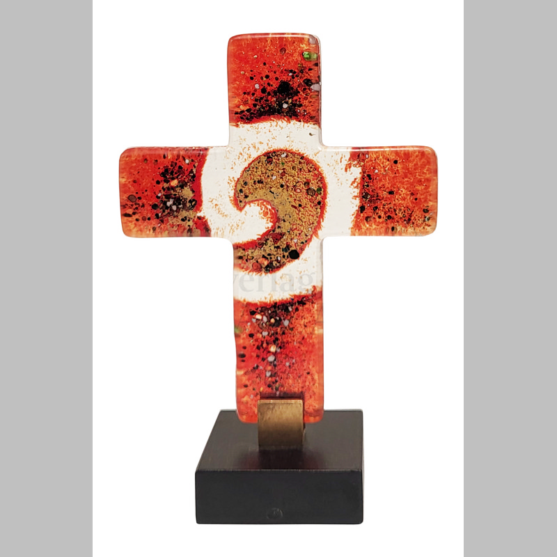 Glaskreuz auf Holzsockel, Rot, 12 x 10 cm890188