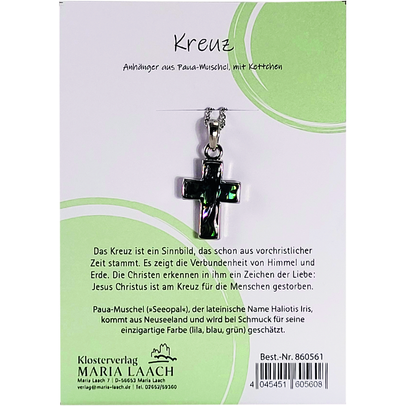 Halsanhänger Kreuz, Paua-Muschel, 2,2 x 1,5 cm, mit Kettchen860561