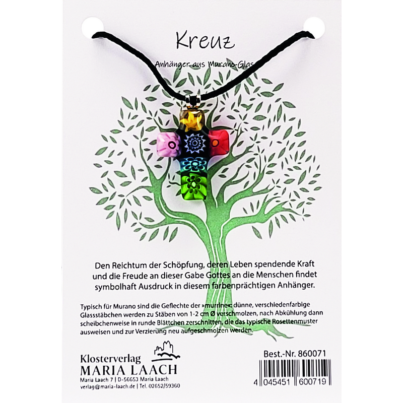 Kreuz, mehrfarbig, 3 x 2 cm, aus venezianischem Muranoglas, mit schwarzer Schnur860071