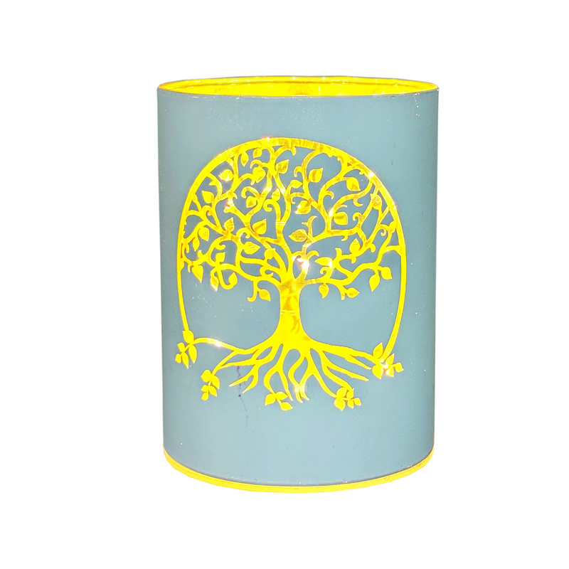 Glas-Windlicht Lebensbaum, weiß, 10 cm hoch, Ø 7,5 cm872106