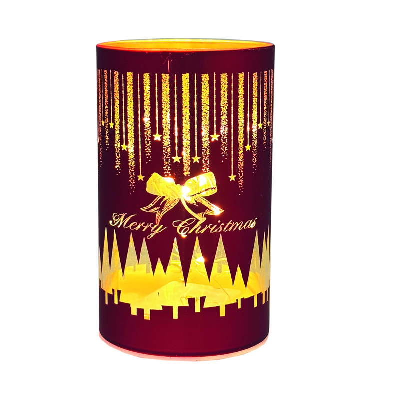 Glas-Windlicht Sterne und Bäume, rot, 12,5 cm hoch, Ø 7,5 cm872103