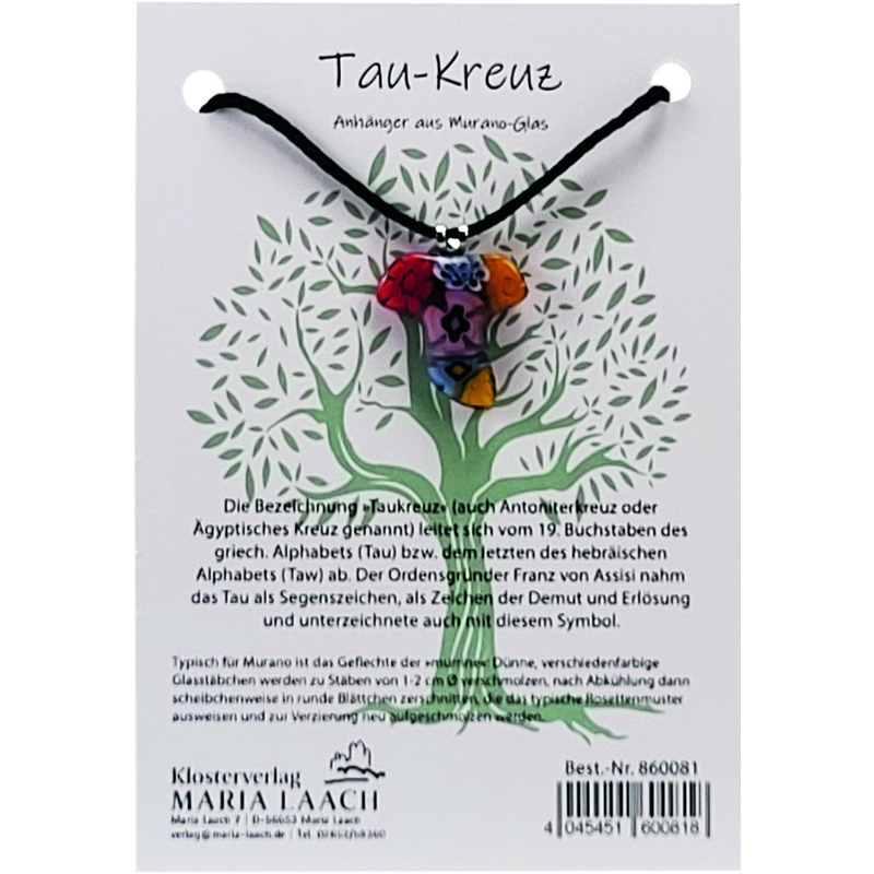 Tau-Kreuz, mehrfarbig, 2 x 2 cm, aus venezianischem Muranoglas, mit schwarzer Schnur860081